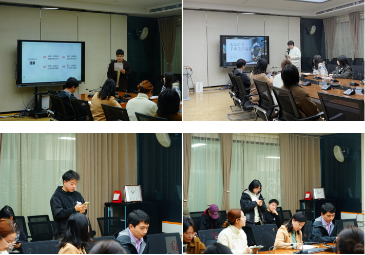 活动伊始,支部副书记刘耀淳介绍活动背景及目标,并带领全体党员庄严重温入党誓词,在铿锵誓言中坚定理想信念、强化使命担当。专题理论学习环节,支部党员吕佳玥、刘艺婷同志领学2025年全国两会精神及“十五五”规划建议相关内容,引导党员深入理解国家战略对珠宝行业发展的指导意义。党员代表围绕科技创新、文化传承与高质量发展等议题展开交流,积极探讨将国家战略需求融入专业学习与个人成长的实践路径。