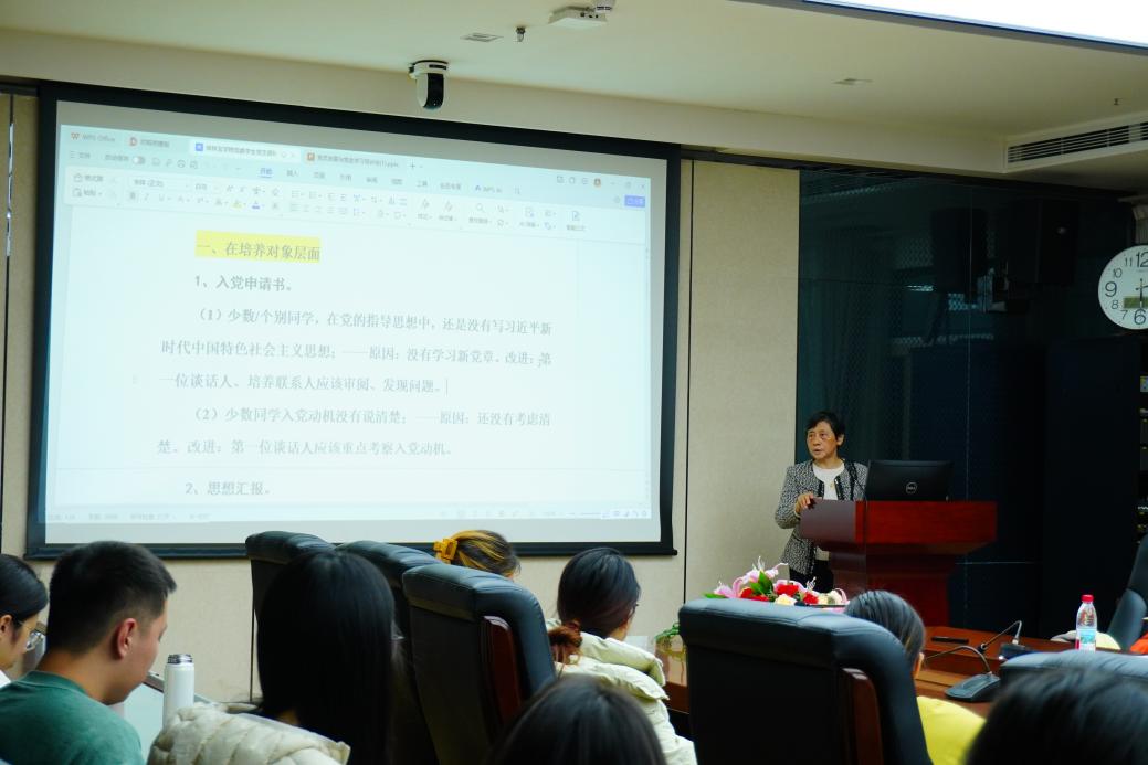 朱勤文教授结合审阅入党材料中发现的具体问题,从培养对象、培养联系人及支部委员会三个层面进行了深入剖析。她指出,部分同学对党的百年奋斗历程认识尚显不足,对党的二十大精神的理解仍需深化,理论根基有待夯实。朱勤文教授强调,各党支部和全体党员必须坚持全面从严治党的高度自觉,深刻把握党员发展工作的重要意义,以务实行动确保发展党员工作的规范性、严谨性与高质量。