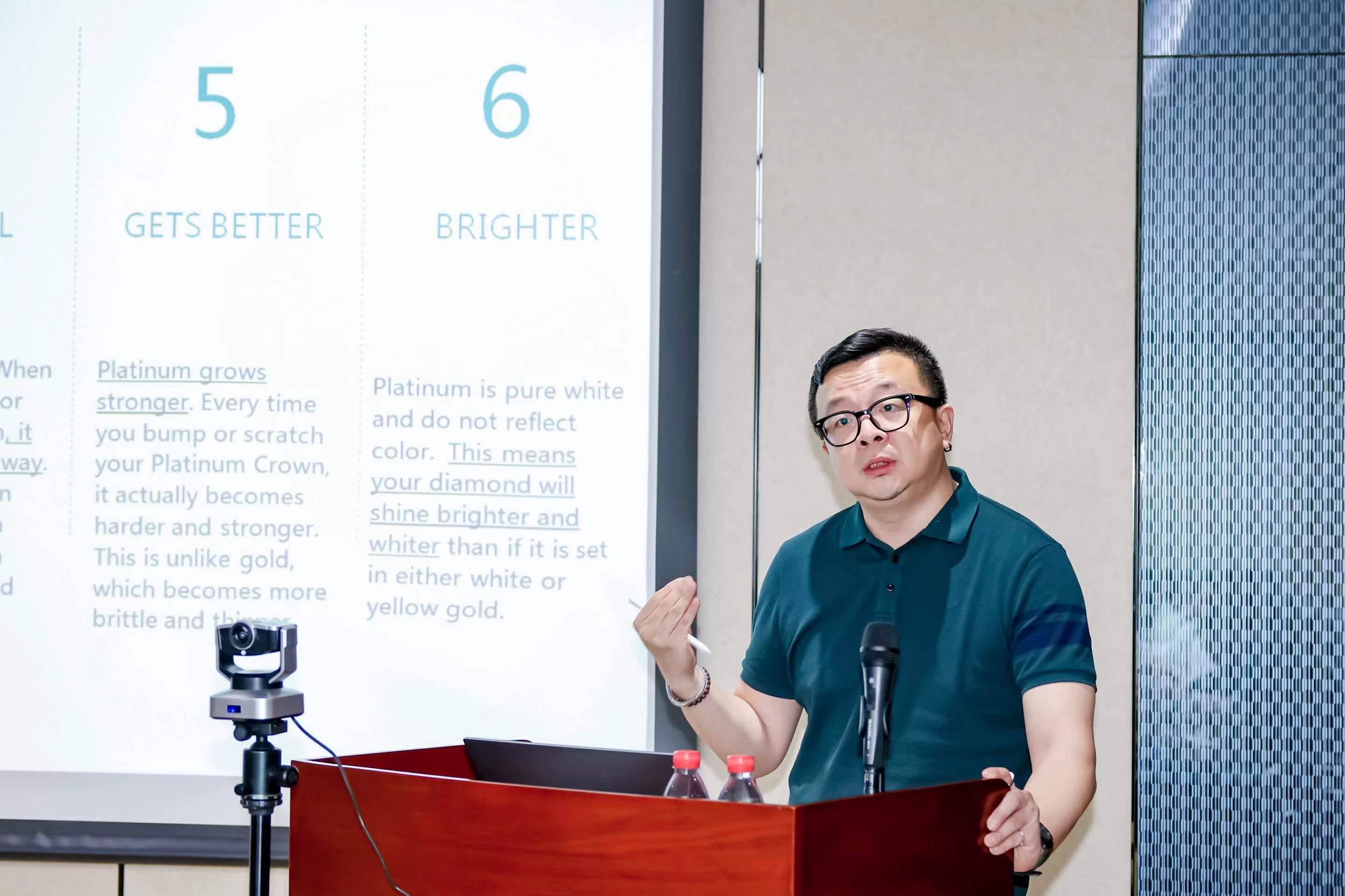 监叶翔从铂金清洁环保、开采稀有、耐腐耐磨的金属特性,引出了铂金“Pure/Rare/Eternal”的三大精神。他表示,“坚韧”与“永恒纯洁的爱”是铂金一直以来经久不衰的设计理念。