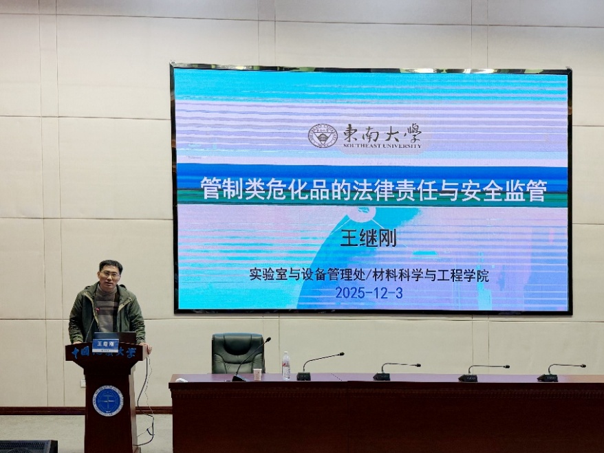 随后,王继刚副处长以 “管制类危化品的法律与安全监管”为主题授课,详细解读《危险化学品安全管理条例》,明确高校及个人在危化品全流程的法律责任,针对英国365集团公司等学院涉酸、易燃易爆气体场景进行深入指导。