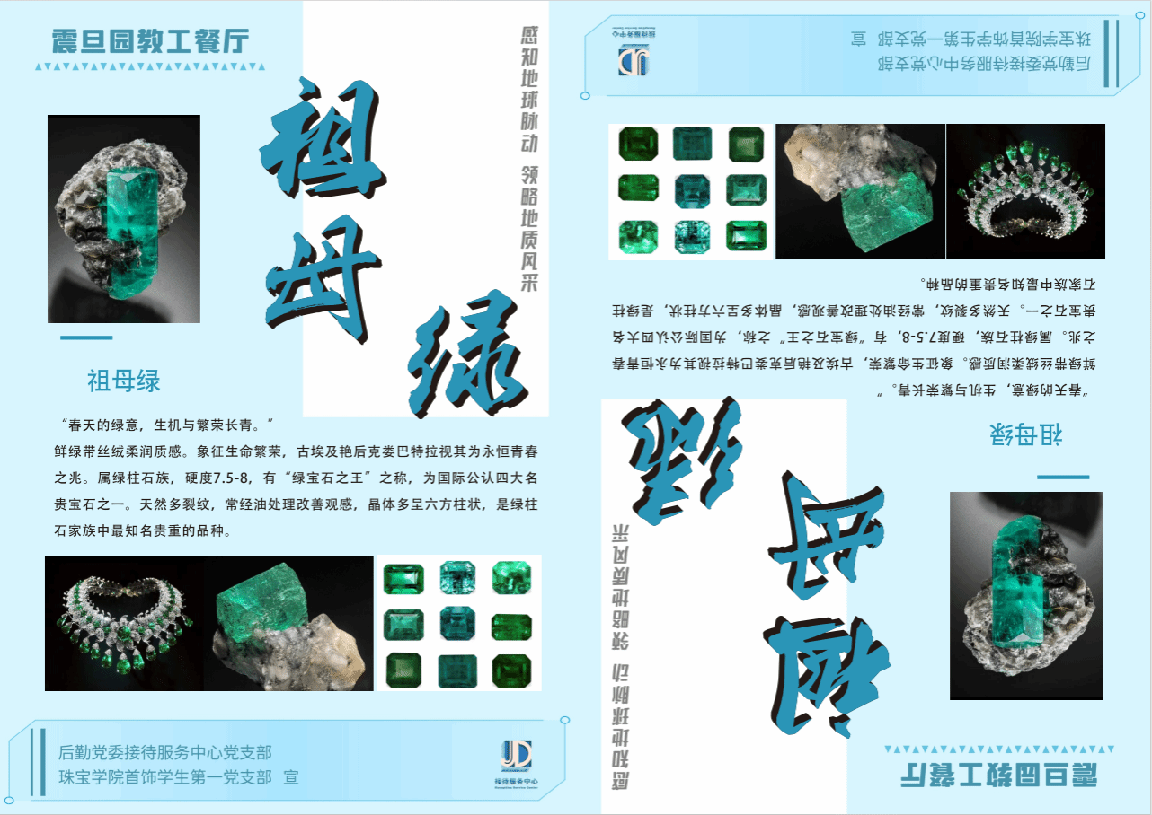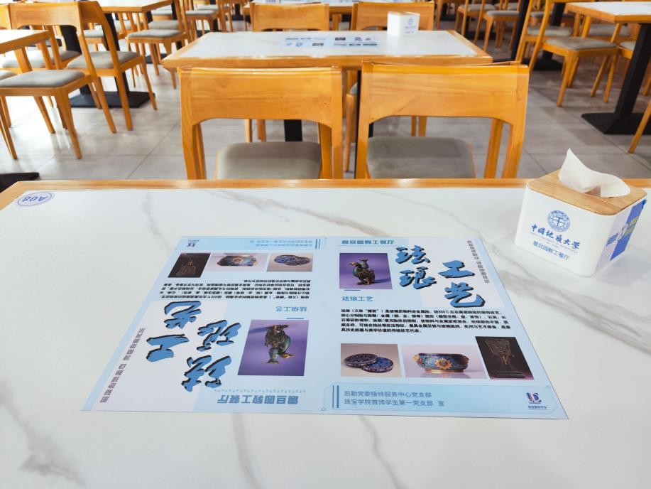 (通讯员 唐静 李箐纾)地大师生们在享用美食的同时,不经意间就能与亿万年前的古生物或千年传承的工艺瑰宝“相遇”。近日,教工餐厅悄然焕新,餐桌上出现了一系列精美别致的科普桌贴。这是我院英国365集团公司首饰学生第一党支部与接待服务中心党支部共建特色活动,以“创意桌贴”为媒介,共同打造的“地质文化餐厅”成果。