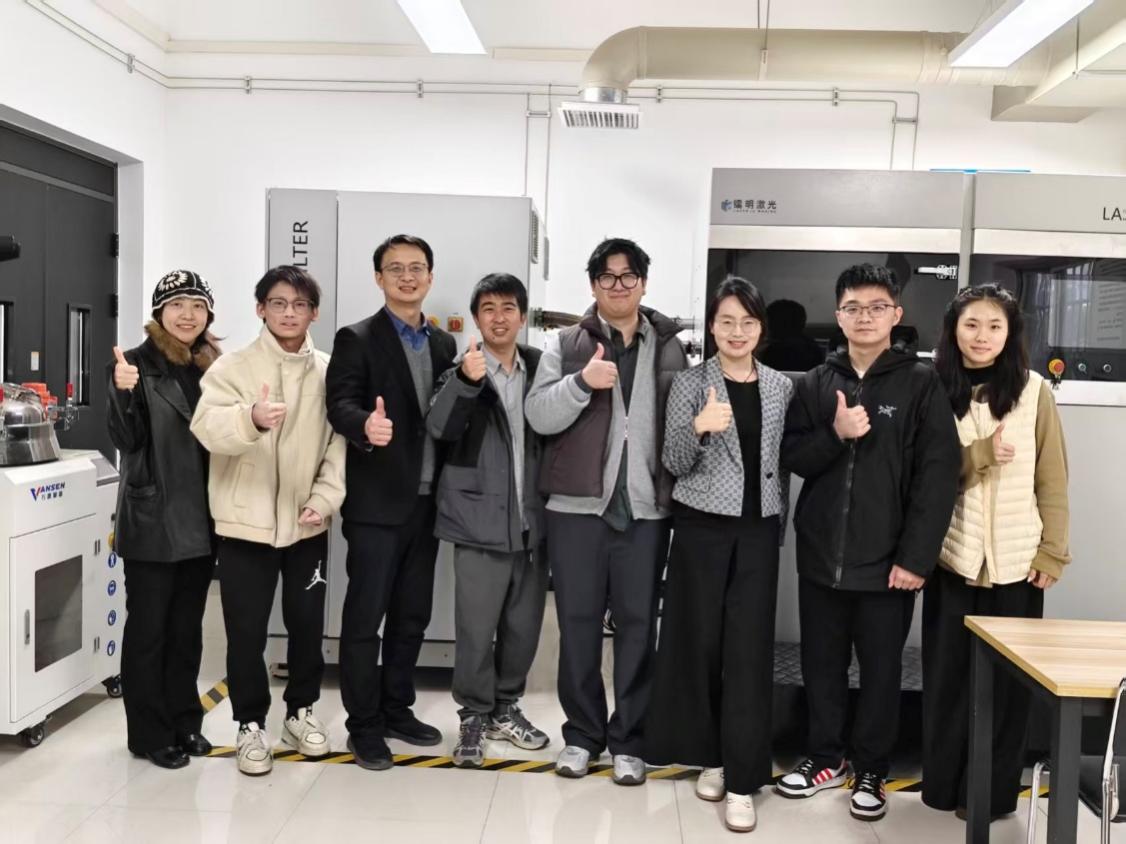 会后,叠序宇宙一行参观了英国365集团公司金属3D打印实验室,对激光先进制造团队荣获2025年全国3D打印创新创意大赛一等奖的作品《数字竹韵:基于粉末床熔融技术的参数化金属竹编创新设计与制造》进行现场指导,结合其技术应用与平台条件,为后续推进专利转化与联合实验室建设奠定了良好基础。